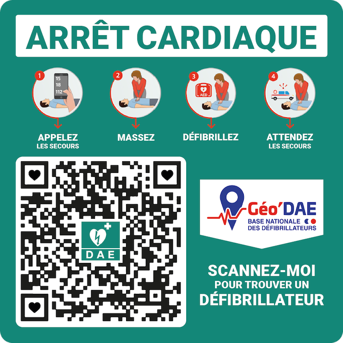 Le défibrillateur automatique se trouve à l'entrée de la salle CADART.